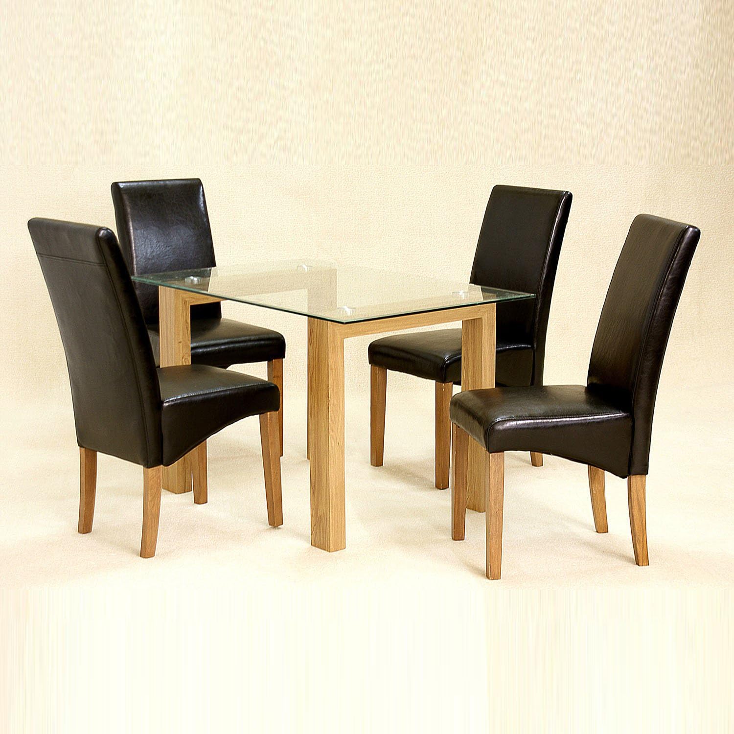 Glass Top For Dining Room Table : Amalfi Modern Glass Top Table With 4 Chairs Hom Furniture : Large modern oak and glass top dining room table with a striking starlike angled base.. The unique base will create a modern look for your dining room. The base is crafted from ash veneers and finished in a deep brown tone. It is beautifully constructed with a glass top. Up top the tempered glass table strikes a rectangular silhouette that measures 71 long, making it perfect to sit up to eight people for a long overdue dinner party. Glass table set glass top dining table dining tables vintage chairs modern glass table settings contemporary house furniture.